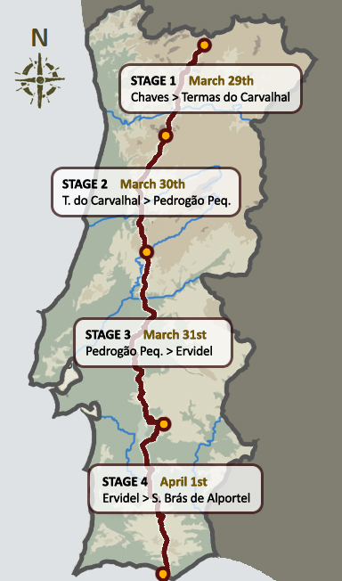 The 2018 Edition of O Caminho mais Longo will cross Portugal from up to down in off-road trails, following the outline of the mythical N2 road, the longest road in Portugal, connecting Chaves to Faro. With over 800km of off road trails to run in 4 days, this tour will take you deep in to countryside of Portugal through high mountain trails, plunging valleys, stunning rivers crossings, and lost villages in the middle of nowhere